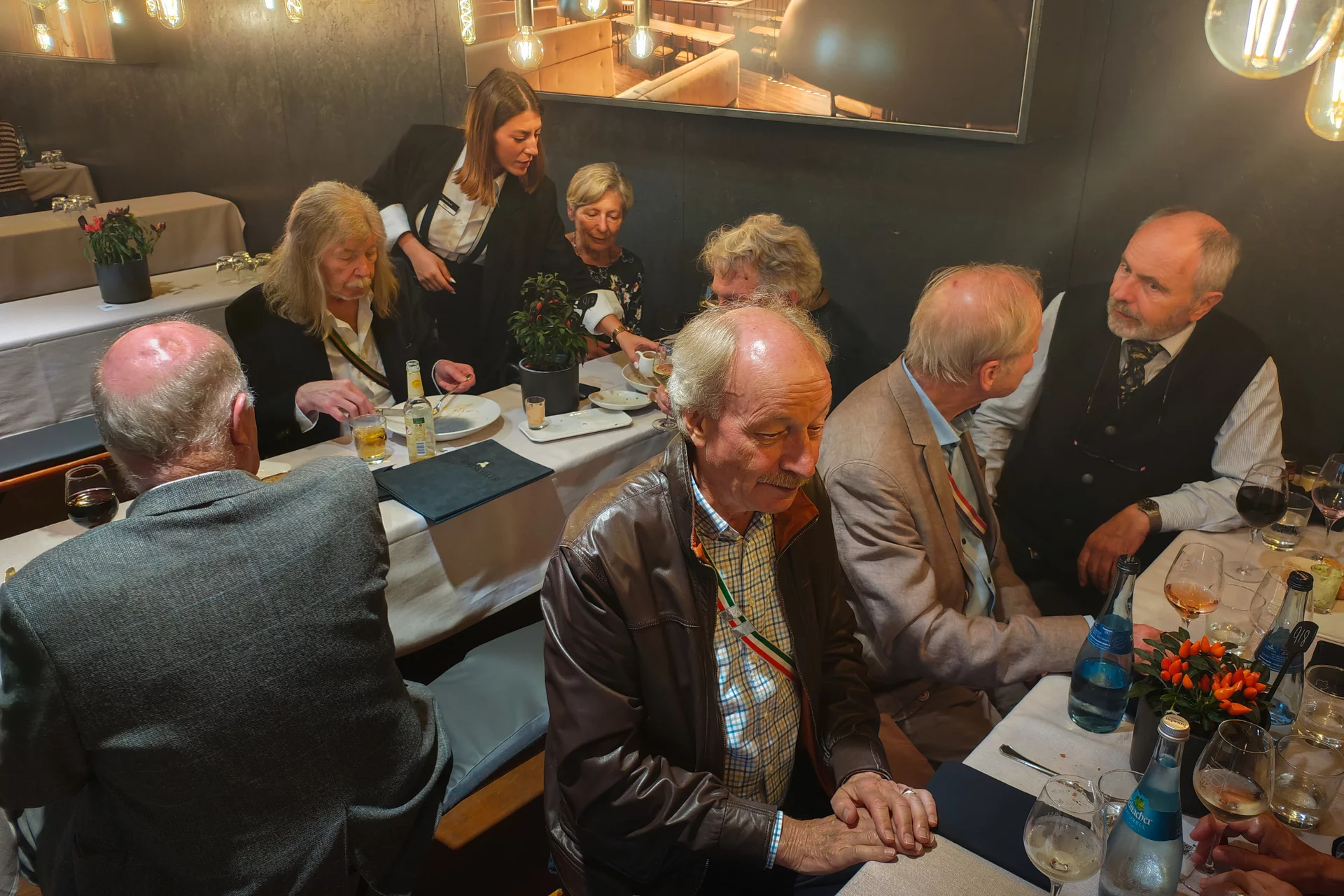Die anwesenden 17 Personen haben den Abend bei einem herzhaften schwäbischen Abendessen, dem einen oder anderen Schoppen Wein und vielen angeregten Gesprächen genossen.